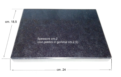 Misure: mm. 240 x 185 spessore 20mm (con piedini in gomma 25mm).